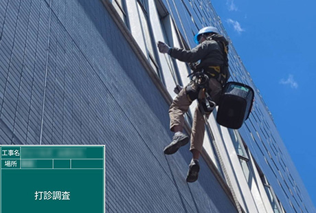 ロープアクセスでの打診調査も可能ですので、高所や足場が組めない狭い場所、特殊な形をした建物もお任せください。